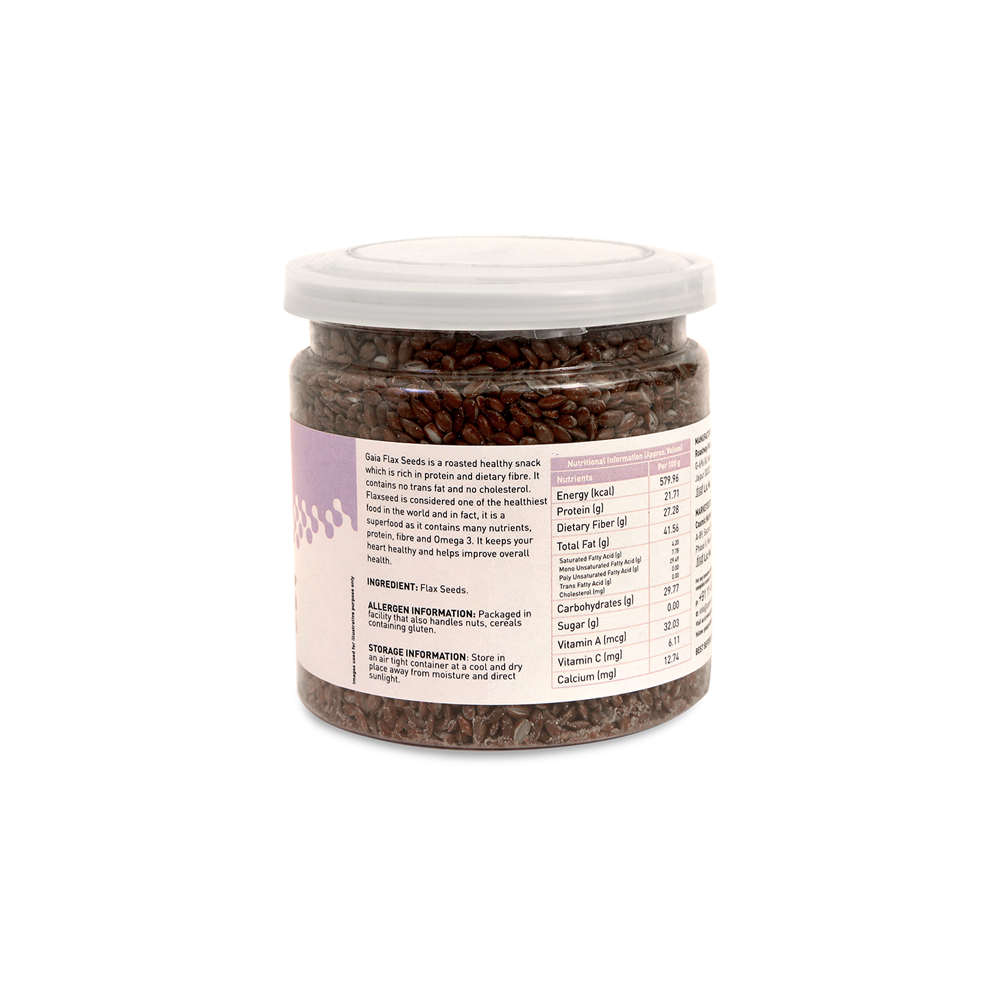 GAIA Flax Seeds is a roasted healthy snack that is rich in protein and dietary fiber. It contains no trans fat and no cholesterol. Flax Seeds are considered one of the healthiest foods in the world and in fact, it is a superfood as it contains many nutrients, fiber and omega-3. It keeps your heart healthy and helps improve overall health.
